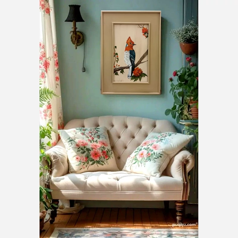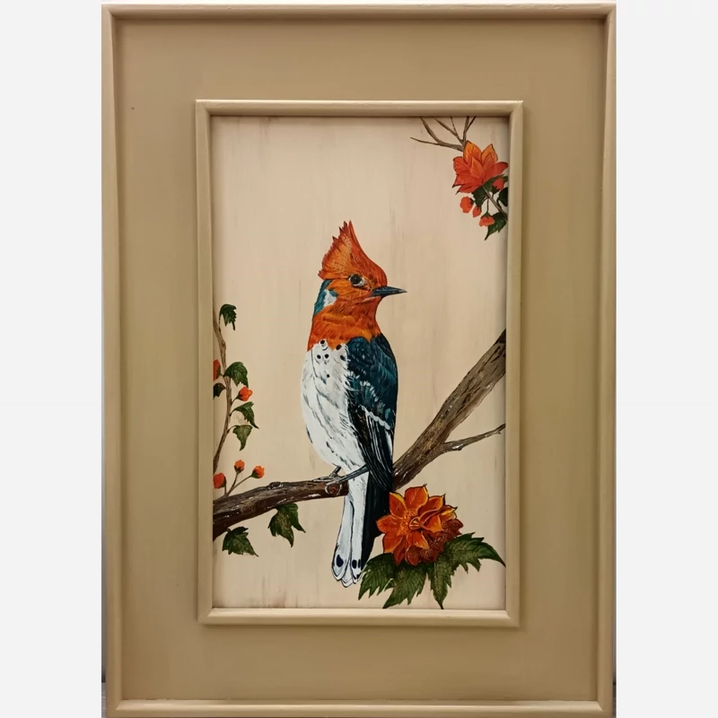 تابلو نقاشی کار دست مدل هدهد در میان گلها