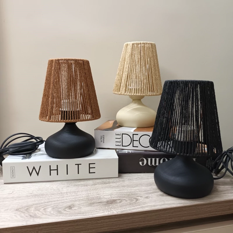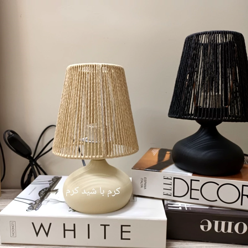 آباژور رومیزی مدل امپریال (چراغ خواب) جنس پایه فلزی شید رافیا