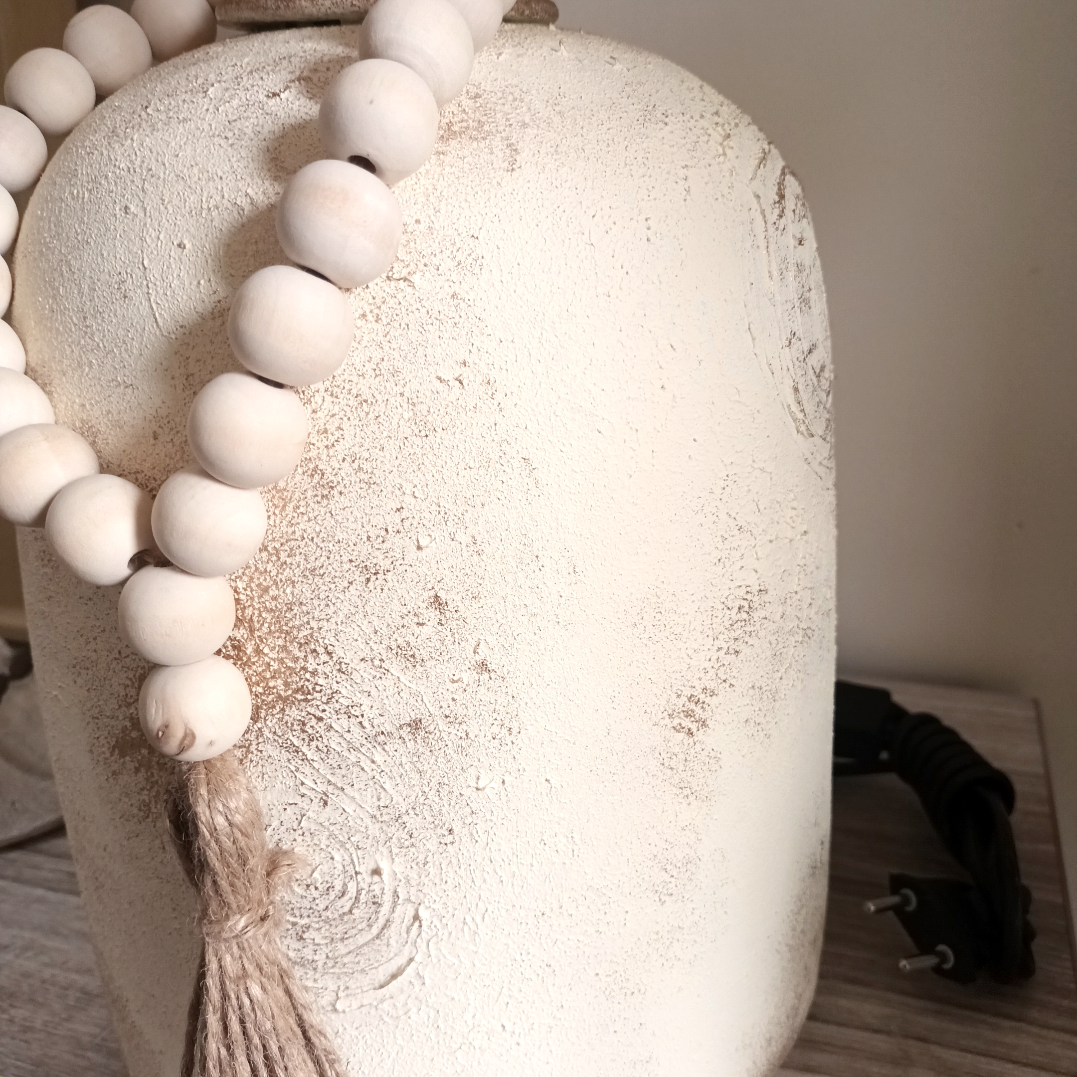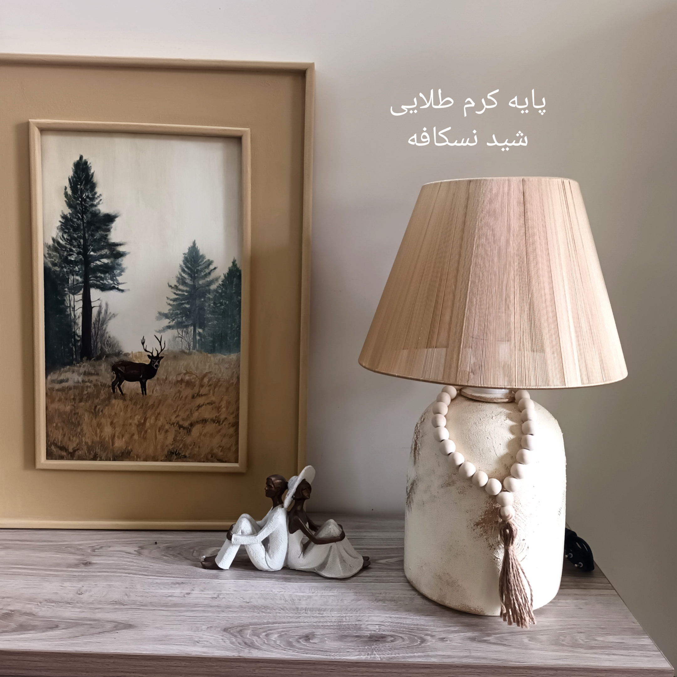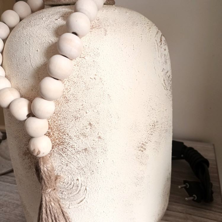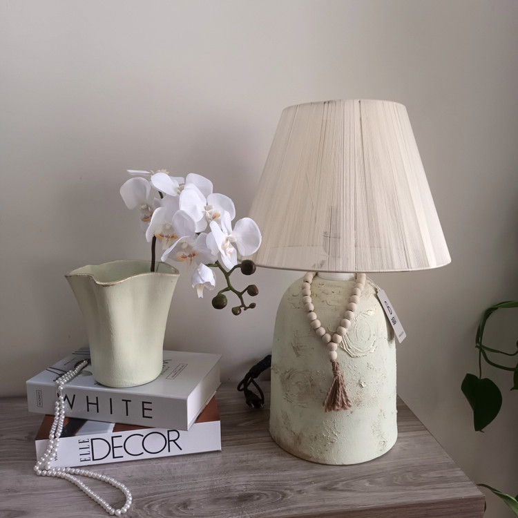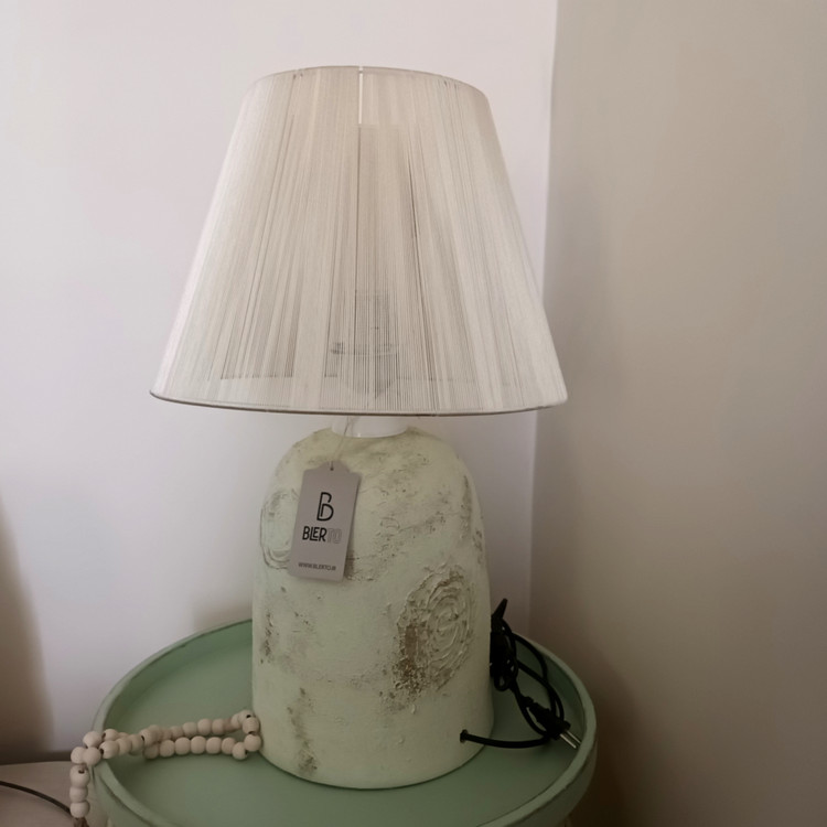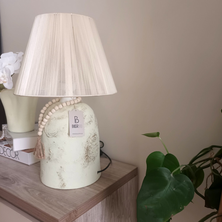 آباژور سفالی مدل فانوسی بلند پتینه با شید نخی
