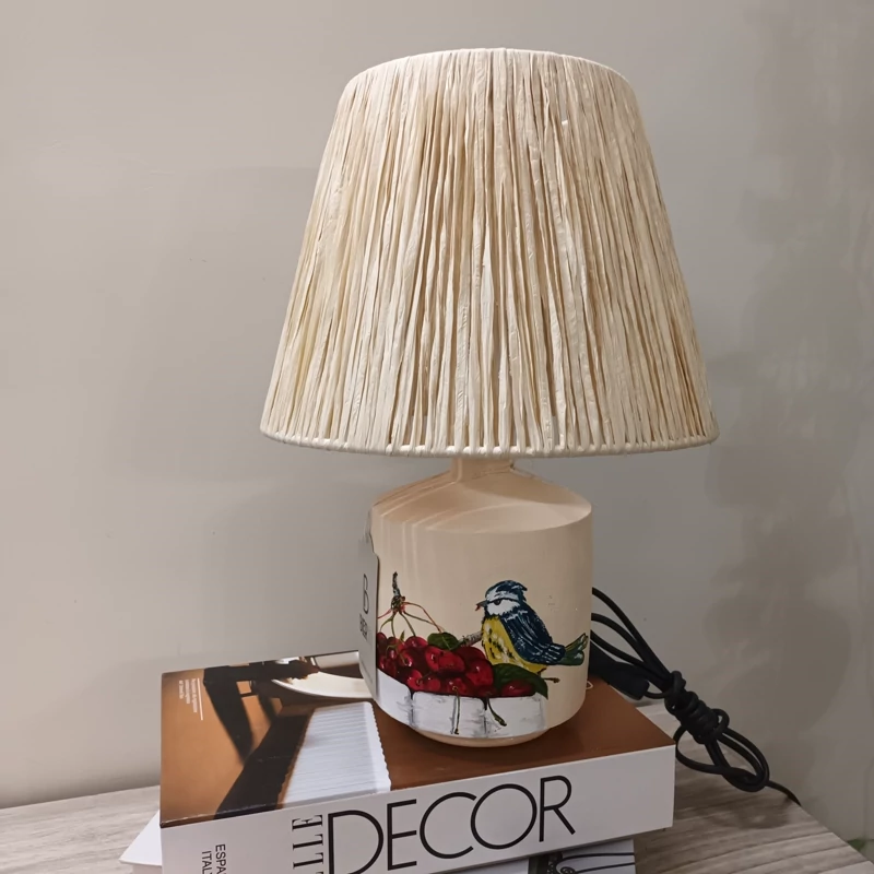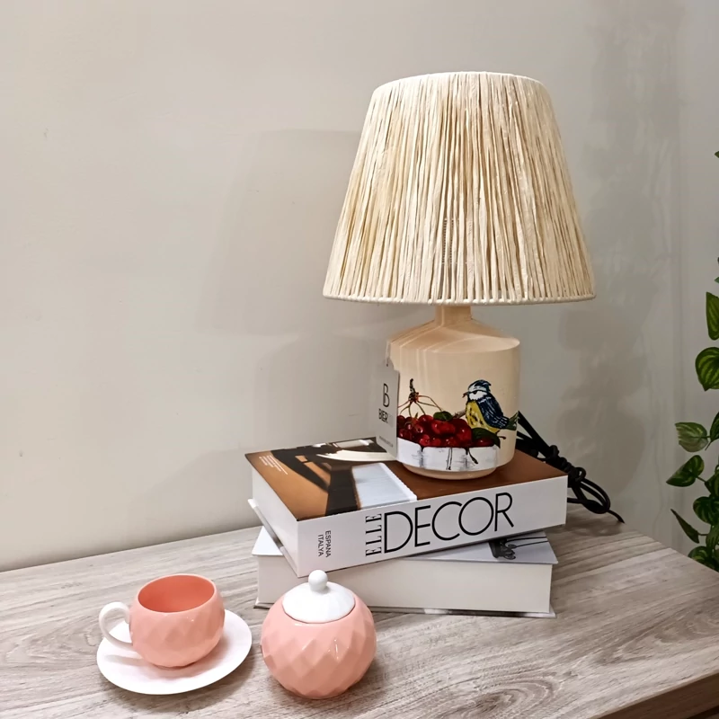 آباژور سفالی نقاشی دست مدل نغمه کوچک با شید رافیا مخروطی