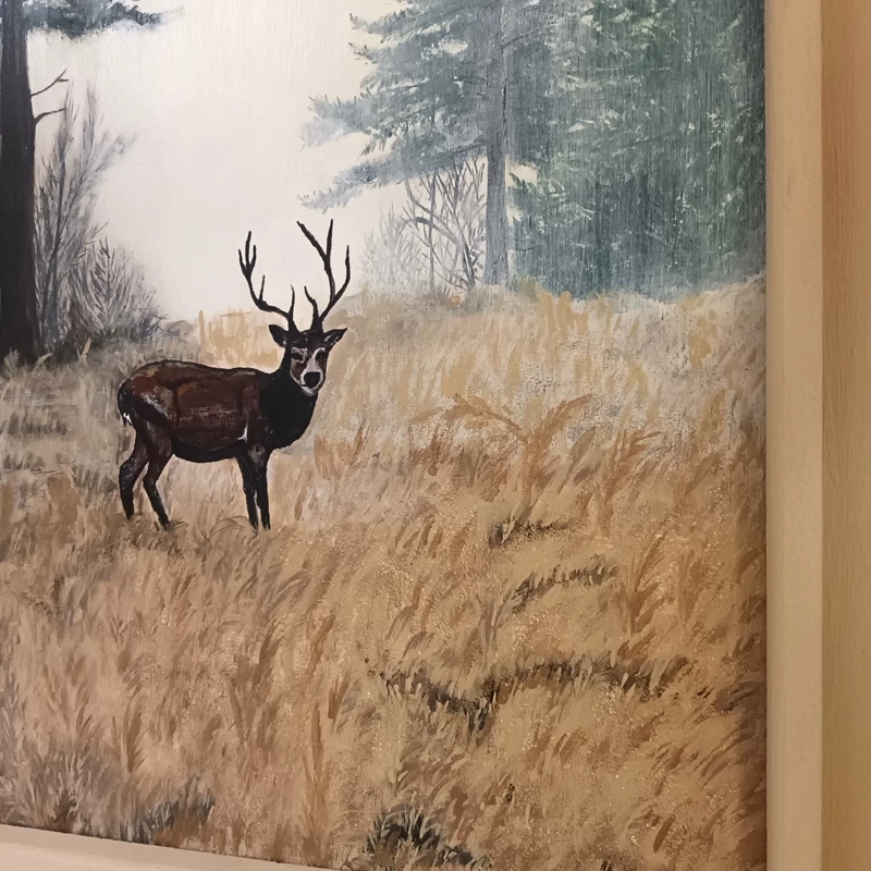 تابلو مه در جنگل نقاشی شده با عشق از عمق جنگل وقتی بهش نگاه میکنید حس و حال جنگل به وجودتون رخنه میکنه کلا جنس از ام دی اف میباشد رنگ و نقاشی ثابت و قابل تمیز کردن میباشد آباژور های ستش هم در سایت موجوده
