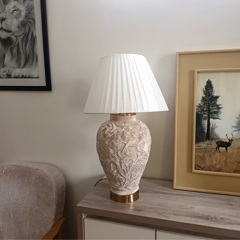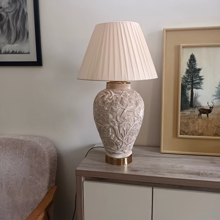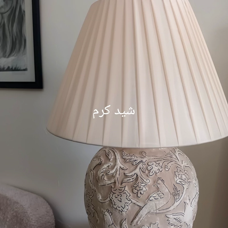 آباژور گل مرغی شکلاتی باخطوط اسلیمی و شید پارچه